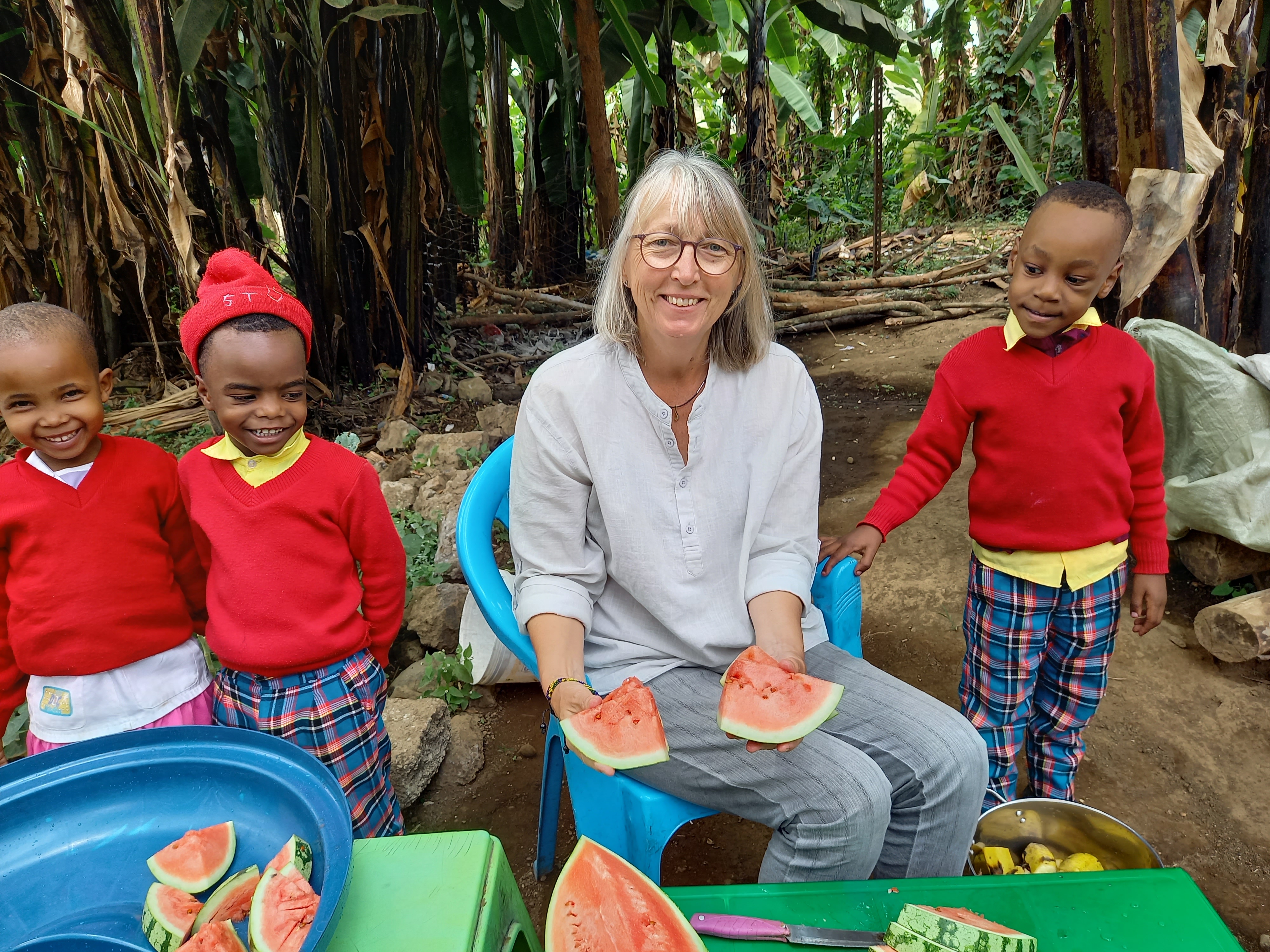 Die Fahrt zur School of Hope wird wohl immer etwas besonderes für Ines bleiben, denn sie begleitet das Projekt seit Stunde null. Dieses Mal wurde sie von Angela begleitet. Doch vor Abfahrt wurde eine ganze Wagenladung Lebensmittel besorgt und Angela hat reichlich Schreibbedarf gespendet. Das Obst und ein Fußball wurde von Antonia finanziert. Wie immer wurde Ines mit Gesang empfangen und ihr Massai Lieblingslied war auch dabei. Die Schule erstrahlt wieder in neuem Glanz, denn wir haben sie neu streichen lassen. Nun hat auch die Küche endlich einen Anstrich erhalten. Ines und Angela haben bei der Essensausgabe geholfen, was bei über 140 Kindern in Arbeit ausartet. Aber es gab auch wieder viele schöne Momente mit den Kindern und Nancy.