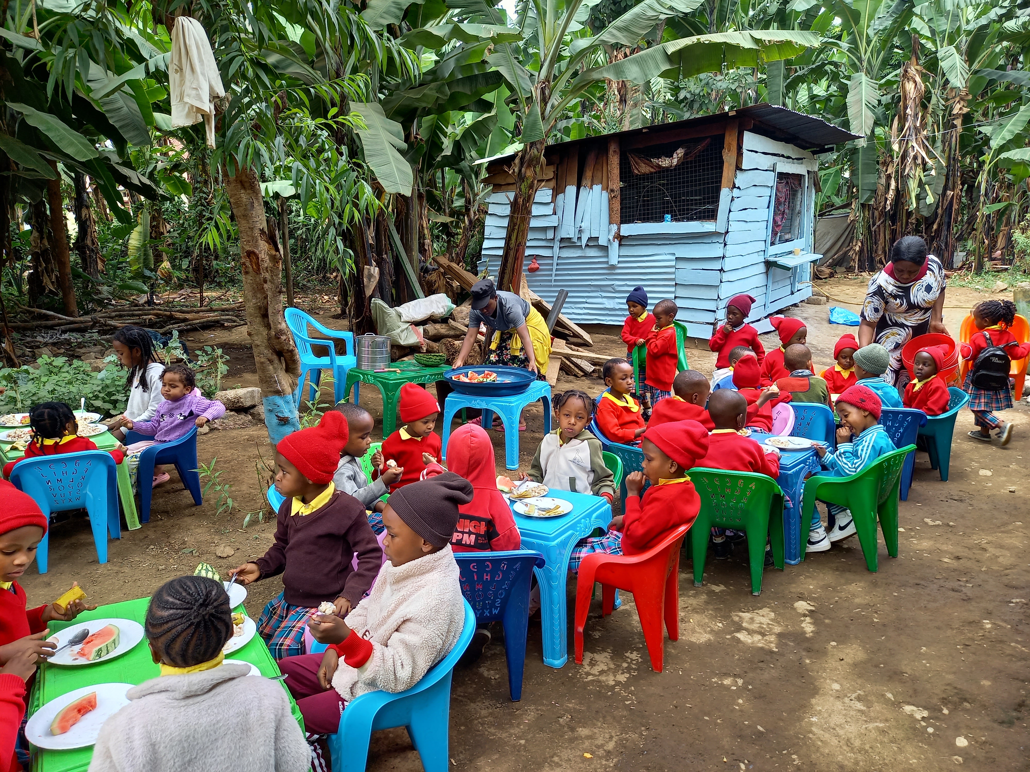 Madam Tina kennen wir aus der Kindertagesstätte Tuleane. Sie hat dort als Lehrerin gearbeitet. Nun hat sie ihre eigene Kindertagesstätte eröffnet und Ines hat sie dort besucht. Natürlich hat sie auch dort eine kleine Spende (Obst und Reis) übergeben. Es war ein herzliches Wiedersehen und sie haben einen schönen Schultag zusammen verbracht..